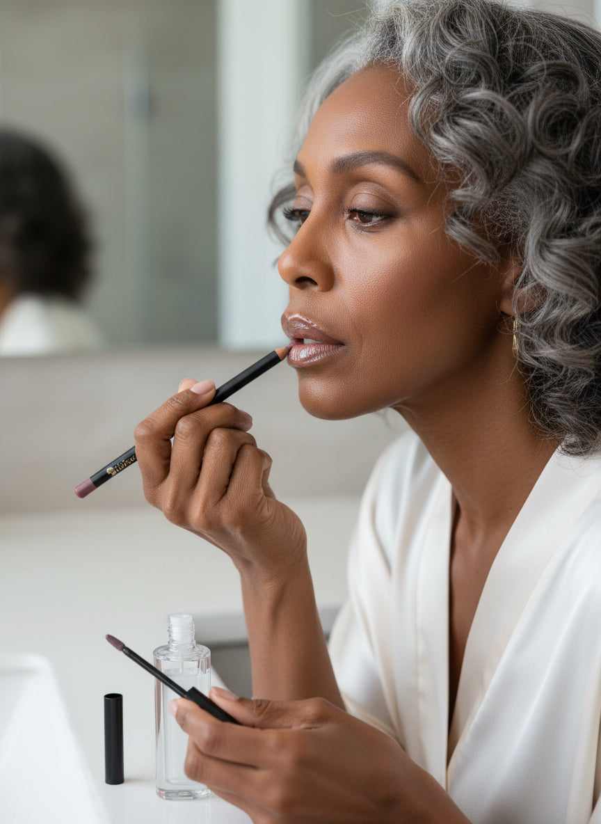 TIP: For narrow lips, apply a pencil slightly darker than the lipstick color just outside the natural lip line. If lips are full apply pencil, that matches the lipstick shade just inside the natural lip line.
